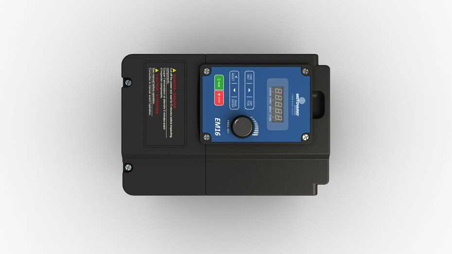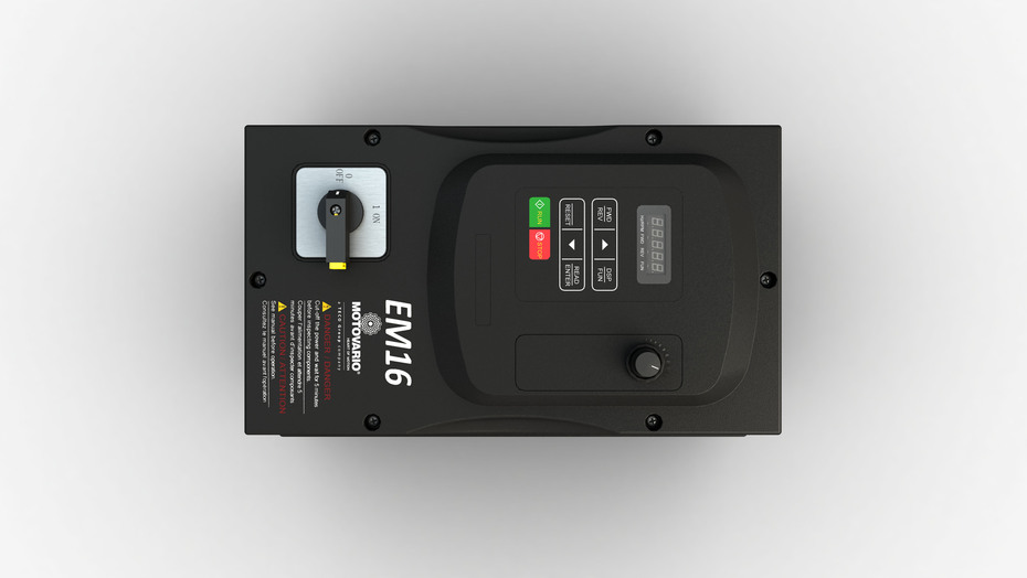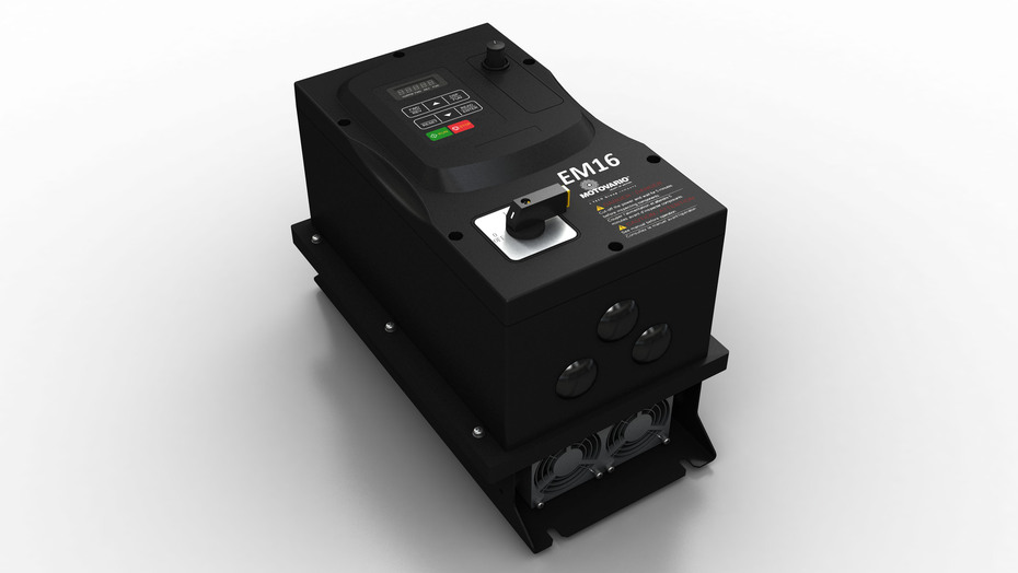 The EM16 inverter series is dedicated to the control of squirrel-cage three-phase asynchronous motors and is available both with single-phase and three-phase power supply. Compact, robust and versatile, the EM16 is equipped with a high-performance sensorless vector control that allows for dynamic management of the motor useful for many industrial applications.